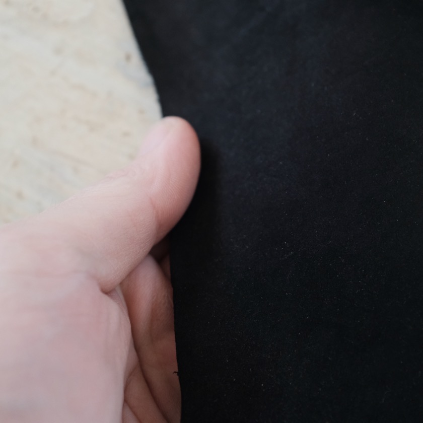 手触りがさらさらとした起毛の革といえば、スエードが思い浮かぶ方も多いかもしれませんが、こちらは銀面側を細かく毛羽立たせた革です。起毛革でよく知られたスエードよりも上品な印象に仕上がります。