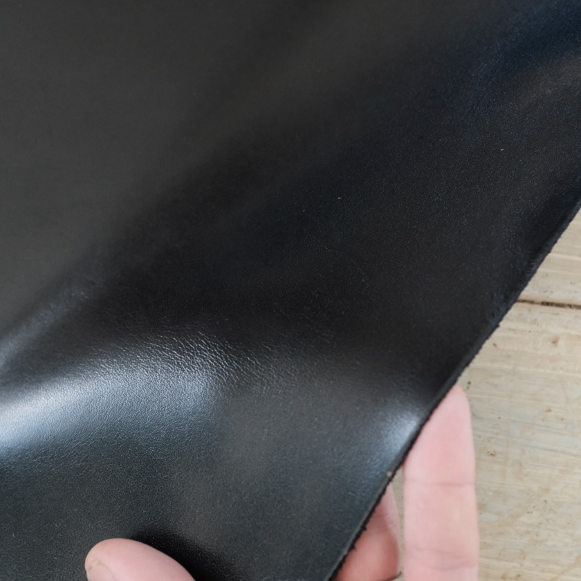 クロムなめしの顔料仕上げなので、経年変化はありませんが、靴になったときに安定した仕上がりになるので、ビジネスシーンや日常使いの靴に向いている革です。